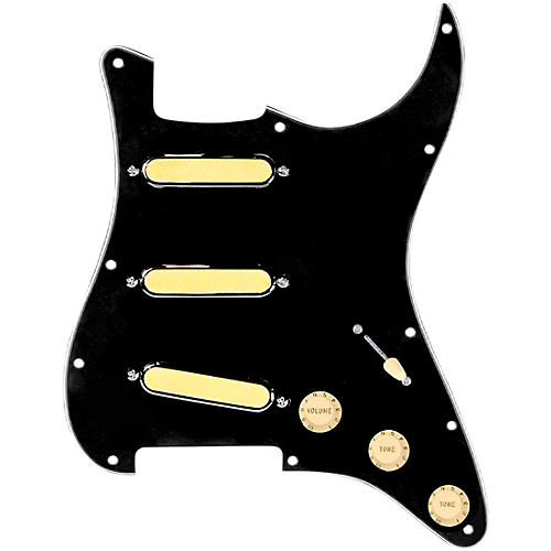920D Custom Gold Foil Loaded Pickguard for Strat With Aged White Pickups & Knobs, S7W Wiring Harness Black