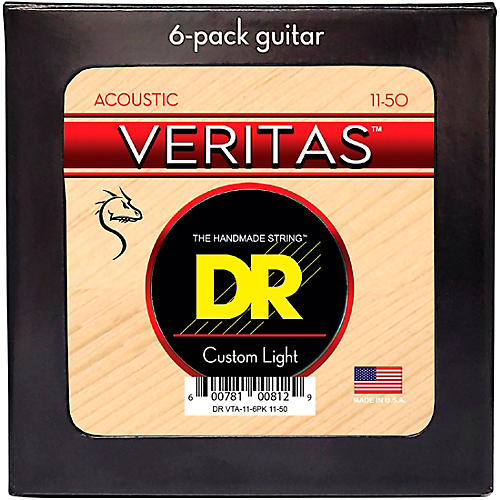 DR Strings VERITAS Uncoated Accurate Core Technology Acoustic Guitar Strings 6-Pack Custom Light (11 - 50)