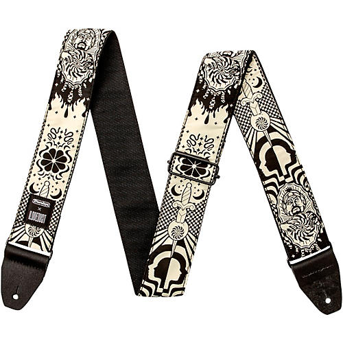 The Dunlop I Love Dust Night Spells guitar strap is a mesmerizing accessory that will add a touch of enchantment to your stage presence. This strap, featuring a captivating design by the award-winning UK design crew I Love Dust, is crafted from comfortable, high-quality jacquard-woven fabric.