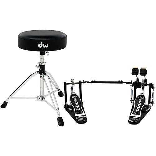 The DW 3000 Series 2-piece hardware pack with double pedal is a dependable upgrade for drummers looking to improve stability, feel and control in their setup. This pre-configured pack includes the DWCP3002A double bass drum pedal and DWCP3100 round top throne, both built with durable all-steel construction for consistent performance. The double pedal features dual-chain Accelerator cams for smooth, responsive action along with adjustable footboard angles and a swivel toe clamp for personalized feel. The round top throne provides thick foam padding, a vinyl-covered seat and a sturdy steel tripod base with double-braced legs for reliable comfort during long sessions. Designed for both electronic and acoustic kits, this hardware pack delivers the durability, comfort and precision needed for practice, recording and live playing.