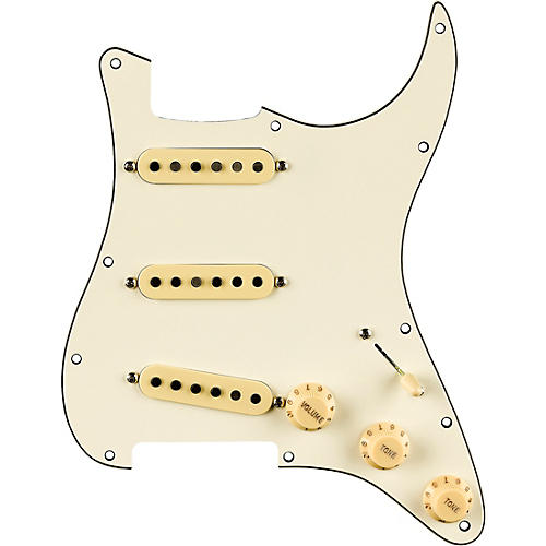 The Pure Vintage '59 prewired Strat pickguard lets you easily customize your Stratocaster with authentic vintage tone and feel. Made in the same factory as iconic Fender guitars, this prewired pickguard features Pure Vintage '59 single-coil pickups to recreate the legendary Strat sound. The pickups use cloth wiring and Alnico V magnets, just like the originals from the '50s. Simply remove your old pickguard, connect the output jack and ground wires, screw in the new prewired pickguard and you'll be playing with vintage Fender tone in minutes.