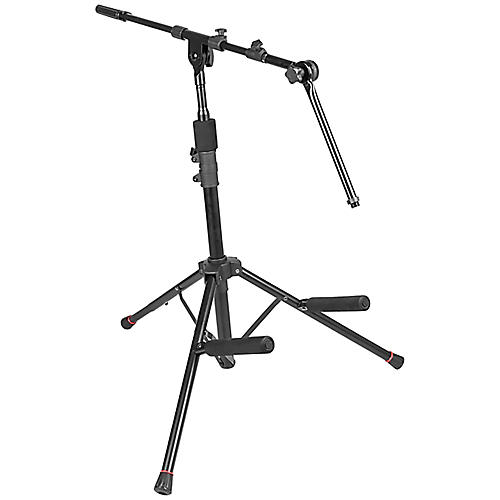 The Gator Frameworks GFW-GTR-AMP-BOOM Amp Stand with Boom Arm makes it easier to play and record guitar. This heavy-duty stand holds amplifiers up to 100 pounds and keeps them stable during use. Five adjustable leg tilt positions let you change the angle of your amp to get the sound you want. The included boom arm helps you mic your amp without needing extra stands, making your setup cleaner. EVA foam covers all the spots where your amp touches the stand, so it won't get scratched or vibrate. When you finish playing, you can fold the unit down and carry it in your bag. It is strong, simple to use, and built for players who want their amp and mic in one spot.