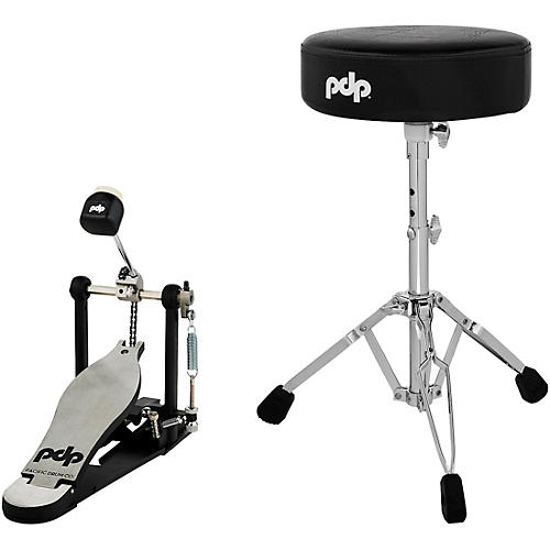 - Hardware bundle pairs a PDP 700 Series single pedal with a lightweight drum throne