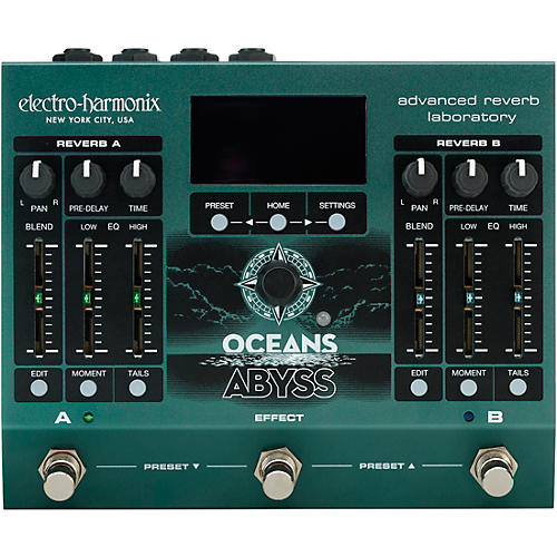 Explore boundless sonic possibilities with the Electro-Harmonix Oceans Abyss Advanced Reverb Laboratory effects pedal.