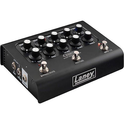 Comprehensive tone shaping is handled by a powerful 3-band EQ with selectable mid pre-shapes and Laney’s Tilt control, allowing broad tonal shifts without sacrificing balance. These controls make it easy to adapt the pedal to different instruments, monitoring environments or mix requirements. A dedicated master volume provides precise level management while preserving preamp character, making the unit equally effective as a live front end or a studio tool.