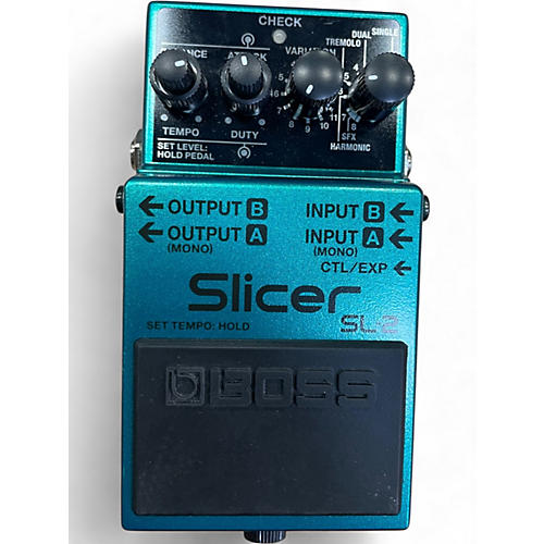 Experience signature BOSS slicing and tremolo textures with this Used SL-20 Slicer Twin Pedal in great condition. Choose from multiple rhythmic slicing patterns, sync to tempo with Tap Tempo, and shape depth and balance for everything from choppy stutter to smooth, pulsing movement. Dual footswitches provide easy on/off control and pattern switching on the fly, while stereo inputs/outputs deliver wide, spacious modulation for guitar or keys. Built tough for dependable stage and studio use.
