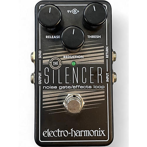 Used Electro-Harmonix Silencer Noise Gate Effect Pedal in great condition offers reliable and effective noise suppression while preserving the integrity of your tone. Designed for musicians who demand clarity, its intuitive 3-control layout and built-in effects loop provide versatile control over unwanted noise. Its compact, pedalboard-friendly design and buffered bypass make it an excellent choice for high-gain setups, delivering clean performance without compromise. Powered by a standard 9V supply (not included).