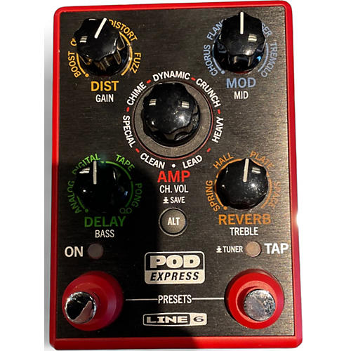 The used Line 6 POD Express delivers trusted performance in a compact, road-ready design—ideal for guitarists seeking reliable tone and flexibility. Featuring seven amp models, 17 effects, stereo outputs, and a built-in tuner, it offers dependable quality for practice, recording, or live gigs. With USB-C connectivity and battery or USB power options, this processor combines convenience and tone integrity, making it a smart choice for musicians who demand value without compromising on sound.
