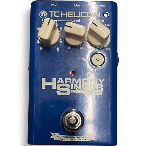 Used TC Helicon Harmony Singer vocal effects processor in good condition, designed to add rich harmony and studio-style polish to live or recorded vocals. It provides one additional harmony voice guided by your guitar input, with simple Harmony, Reverb, Tone, and Level controls for quick, confident setup. Compact and road-ready with a sturdy footswitch, standard mic input and output, and guitar thru for straightforward stage routing. Operates cleanly and sounds great.