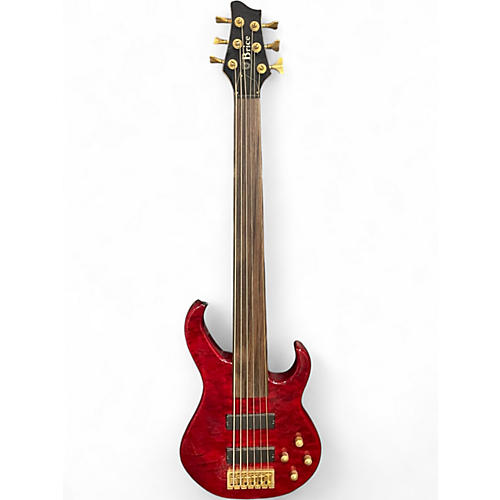 Used Brice 6 String Fretless Bass Candy Apple Red Electric Bass Guitar Candy Apple Red