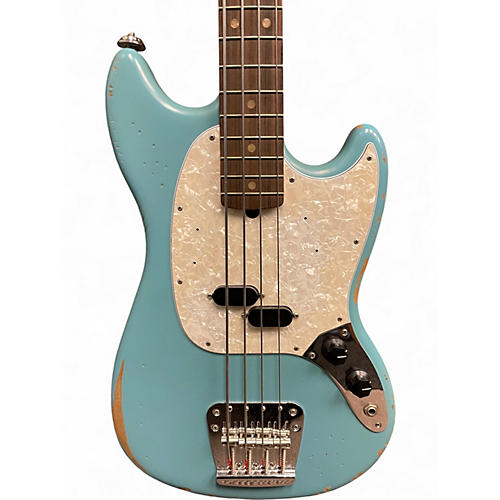 Used 2024 Fender Justin Meldal-Johnsen Road Worn Mustang Electric Bass Daphne Blue Electric Bass Guitar Daphne Blue