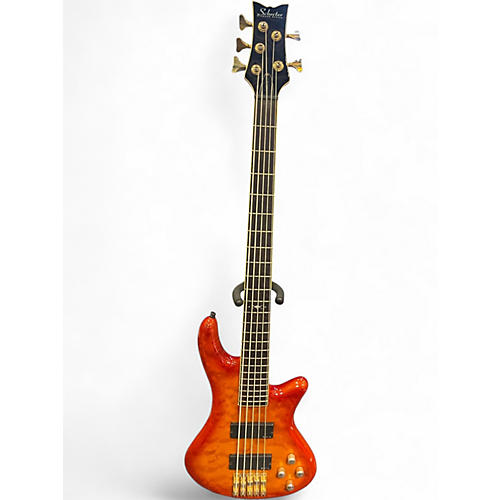 Used Schecter Guitar Research Damien Elite 5 String Orange Electric Bass Guitar Orange