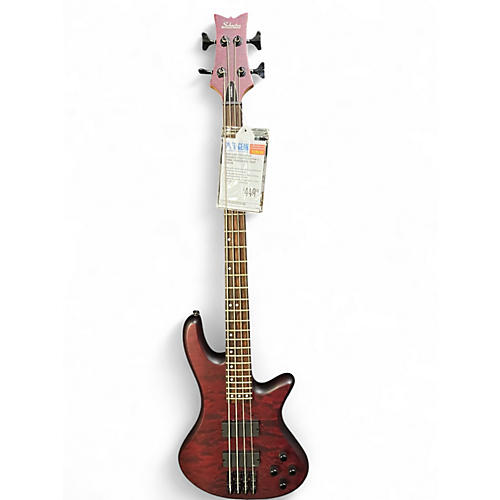 Used Schecter Guitar Research Stiletto Custom 4 String Crimson Red Trans Electric Bass Guitar Crimson Red Trans