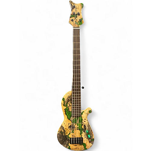 Used Tom Martinson Custom 5 Natural Burl Wood Electric Bass Guitar Natural Burl Wood