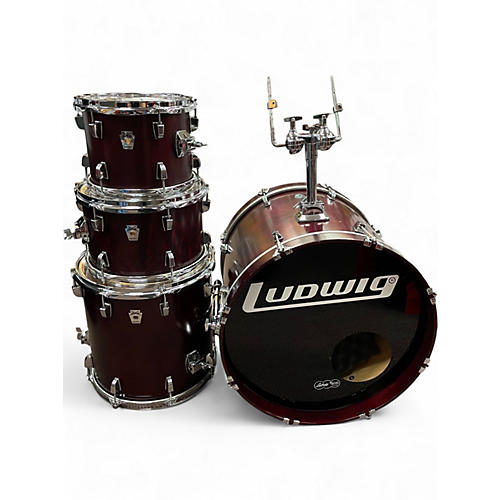 Used Ludwig 4 Piece BIRCH SILVER KEYSTONE RED GRAIN Drum Kit RED GRAIN