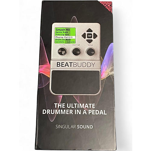 Used Singular Sound BeatBuddy Drum Machine in good condition—an ideal tool for musicians seeking reliable, hands-free rhythm support. With realistic drum beats and intuitive pedal control, it enhances any solo performance or practice session. Count on its color LCD screen, MIDI sync, and 10 high-quality drum kits with 200+ styles, all on the included SD card. Expand your library effortlessly via USB or SD card. Trusted performance for stage or studio at a great value.