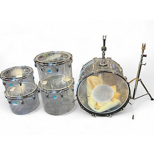 Vintage 1970s Ludwig 5 Piece Quadraplus Clear Vistalite Drum Kit Clear Vistalite