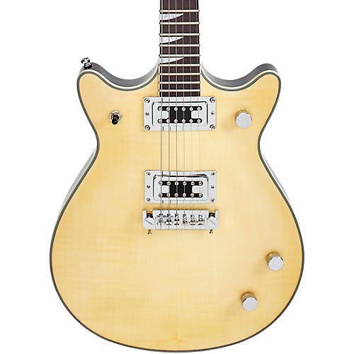 - Body: Chambered mahogany, flamed maple topPickups: Two EW-Retro HumbuckersSwitching: 3-wayControls: 2 Volume 1 ToneBridge: Adjustable tune-o-matic wrap aroundNeck: Mahogany, set neckFingerboard: Rosewood, sharks tooth inlaysScale Length: 24 3/4"Width at the nut: 1 5/8"Hardware: Gotoh-style nickel/chrome