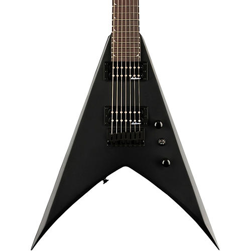 The Jackson JS Series King V JS22-7 KV HT electric guitar unleashes the power of a seven-string for metal and hard rock with its extended 26.5" scale length. The longer scale provides tighter low-end articulation, so you can hear each note ring out with clarity, even when detuning or using heavy gauge strings. Its lightweight yet resonant poplar body offers comfort during long practice sessions while also enhancing sustain. The JS22-7 KV HT features a bolt-on maple neck reinforced with graphite for exceptional stability, so you can rely on its fast maple fingerboard for intricate solos and tight rhythms. With a compound radius design, the amaranth fingerboard has a flatter curve in the upper registers for easy bends while retaining an ideal curve for comfortable chording near the first fret.