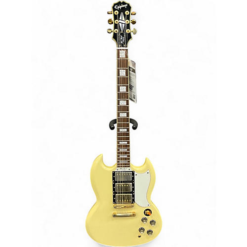 Used 2010s Epiphone 61 Les Paul Custom Reissue Antique Ivory Solid Body Electric Guitar Antique Ivory