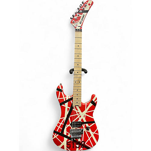 Used 2019 EVH Striped Series 5150 Red with Black and White Stripes Solid Body Electric Guitar Red with Black and White Stripes