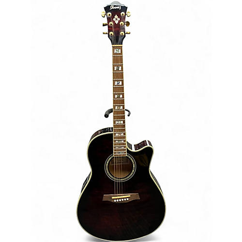 Used Ibanez AEF37E Trans Crimson Red Acoustic Electric Guitar Trans Crimson Red