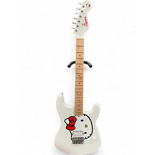 Used Squier Hello Kitty Stratocaster single humbucker white WHITE Solid Body Electric Guitar WHITE