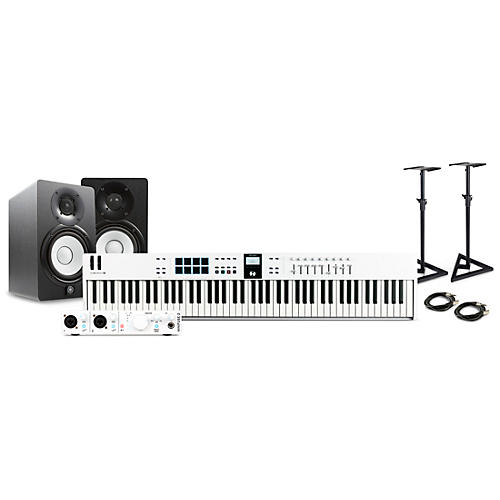 Arturia KeyLab Essential MK3 MIDI Keyboard Controller with Minifuse 2 USB Audio Interface and Yamaha HS5 5-inch Studio Monitor Pair (Cables & Stands Included) White 88 Key Package