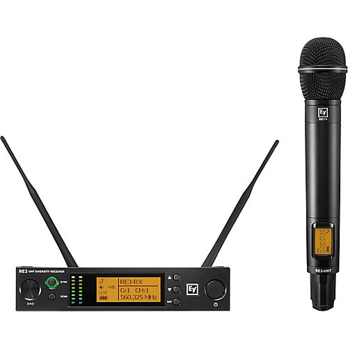 One of the most popular versions of the RE3 system is the set that comes equipped with the Res-HHT handheld transmitter. It contains all of the transmission functions of the bodypack, including automatically syncing of the transmitter and receiver frequencies, and that capacity to lock in other operations data. A magnetic sliding latch mechanism keeps the battery door closed, and makes opening it easy to access the batteries. It operates on two AA batteries (alkaline or rechargeable are preferred). This version features the Electro-Voice ND76 microphone capsule.The Electro-Voice ND76-RC3 is a robust, high-performance, dynamic cardioid thread-on vocal microphone head for wireless handheld transmitters. Designed for excellent all-around voice applications, this precisely tuned capsule delivers crisp, clear, and balanced vocal presence, as well as superior isolation from sound on the stage. Its dynamic capsule contains a large Mylar diaphragm, which delivers a rich and detailed frequency response by combining its large surface area for tonal balance with its low-mass high-velocity material for exceptionally fast transient response. The microphone head features an innovative capsule shock-mount system consisting of a 4-point suspension around the circumference of the capsule combined with a tuned pneumatic pump at the capsule base, offering superior handling noise reduction to eliminate mechanical vibrations and noise in the mix.