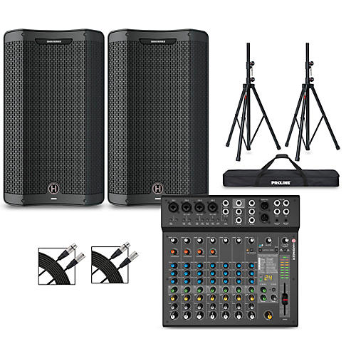 12" loudspeaker package with mixer, stands and accessories included.