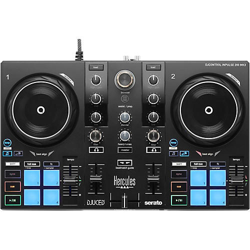 Jump into DJing with a controller designed to teach, inspire and perform. The Hercules DJControl Inpulse 200 MK3 2-channel DJ controller is a compact learning-focused platform built for beginners who want real mixing skills, not just auto-play shortcuts. Built-in dynamic beatmatch light guides, dedicated stems controls, responsive 3.5" jog wheels and bundled DJUCED and Serato DJ Lite software create a complete plug-and-play setup via USB-C connection to Mac or PC. With master and headphone outputs, performance pads, streaming service compatibility and a built-in virtual sound card for livestreaming, the DJControl Inpulse 200 MK3 gives aspiring DJs the tools to learn, practice and perform with confidence.