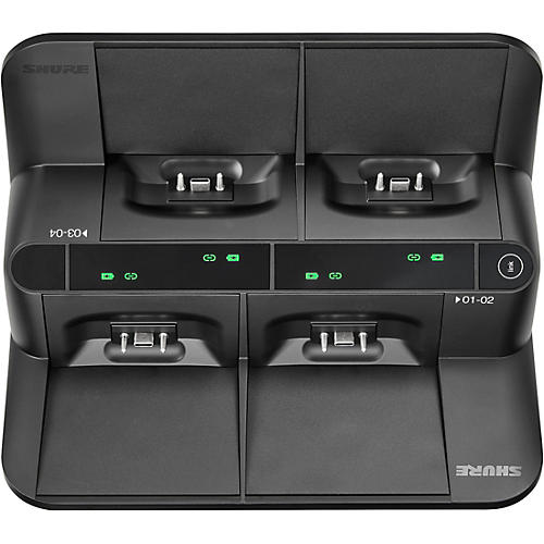 - Networked charging station supports up to four wireless microphones