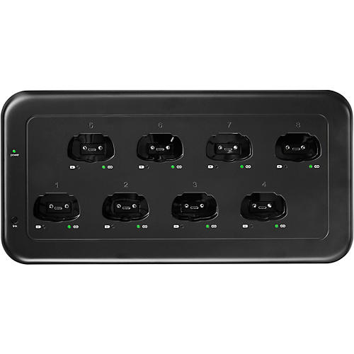 An 8-bay charging dock for effortless mic power management.