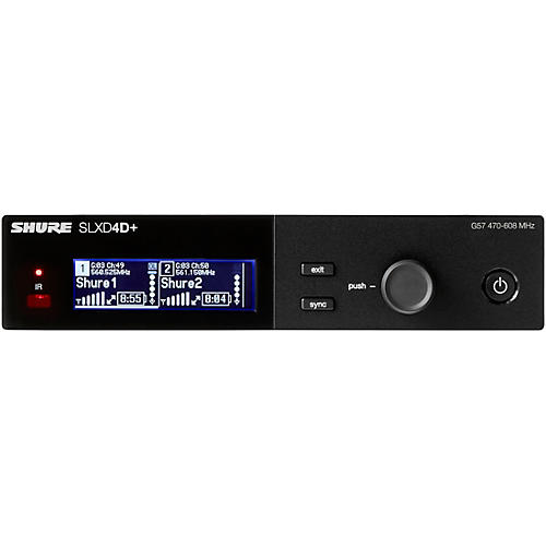 The Shure SLXD4D+ digital wireless receiver is a dual-channel, half-rack receiver designed to serve as a centralized control, monitoring and audio management hub within the SLX-D+ digital wireless system for live sound, installed audio and professional production environments. Operating with 24-bit/48 kHz digital audio conversion and delivering a >118 dB dynamic range, the SLXD4D+ provides transparent audio reproduction alongside dependable RF performance across a 138 MHz wide tuning range (G57: 470–608 MHz), enabling reliable multi-system operation in congested RF conditions. Integrated ShowLink® Ease maintains continuous coordination between the receiver and linked SLX-D+ transmitters, allowing automatic frequency updates, interference mitigation, remote gain adjustment, transmitter locking, firmware updates and secondary transmitter linking without interrupting audio. The receiver supports Audio Summing, allowing both channels to function as a compact two-channel mixer when required, and system status can be monitored and controlled locally or remotely using Wireless Workbench desktop software or the WWB Mobile app over Ethernet, Wi-Fi or Bluetooth. Housed in a rugged metal chassis and supplied with rack-mount hardware, antennas and BNC cabling, the SLXD4D+—with balanced XLR and 1/4" outputs, AES-256 encryption and embedded Shure Digital Feedback Reducer processing—provides a scalable foundation for managing dual-channel SLX-D+ wireless microphone systems.