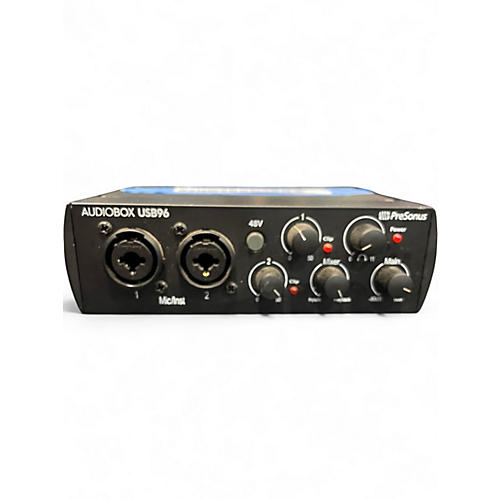 Used PreSonus AudioBox USB audio interface in good condition—a dependable, easy way to capture clean audio for home recording, streaming, and podcasts. This compact 2-in/2-out USB unit provides two combo XLR/TRS mic/instrument inputs with built-in mic preamps, 48V phantom power, and direct monitoring for low-latency tracking. Stereo main outputs and a headphone output with level control make setup simple, while the durable metal housing is built for everyday use.