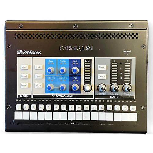 Take control of your monitor mix with this used PreSonus EarMix 16M Personal In-Ear Mixer/Headphone Amp in great condition. Designed for AVB networks, it delivers 16 mix channels plus a main mix, with onboard reverb and limiter for polished in-ears. Power it via PoE or an optional adapter and connect your headphones to the front-panel output for clean, loud monitoring. Compact, road-ready, and ideal for StudioLive and AVB-compatible rigs.